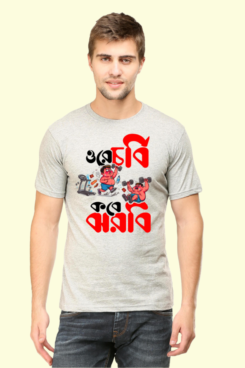 This hilarious Bengali slogan tee “Ore Chorbi Kobe Jhorbi” perfectly captures the struggle between food love and fitness goals — with a wink of humor and a whole lot of attitude.